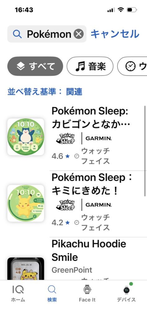 Connect IQ Storeで 「Pokémon」を検索